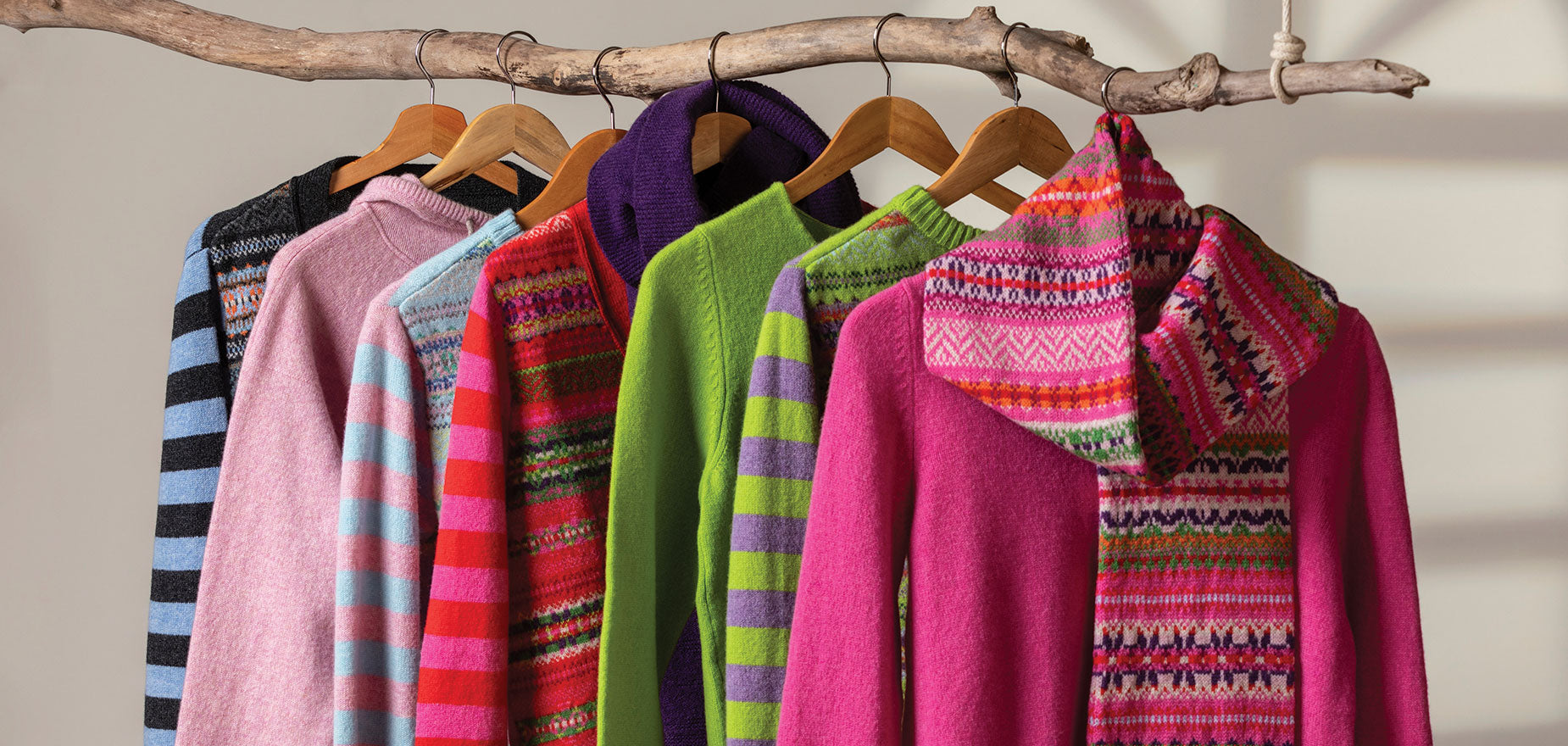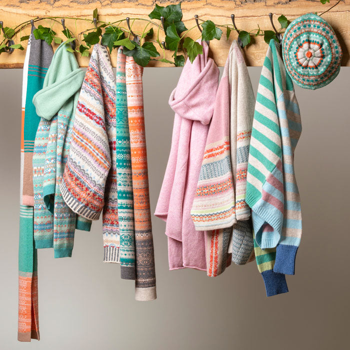 Browse our latest collections alongside a curated range of cosy accessories - from Fair Isle jumpers to vibrant hats and scarves. Each visit offers the chance to discover something truly unique: new designs, limited editions and one-of-a-kind pieces crafted from natural fibres, designed to be worn, loved, and lived in.