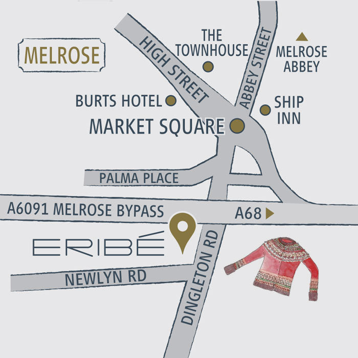 Nestled in the heart of the Scottish Borders, our showroom in Melrose is set within a beautiful Georgian building and garden, just steps from the town square. It’s here that our heritage meets modern design - a colourful space where you can explore ERIBÉ knitwear at its source.