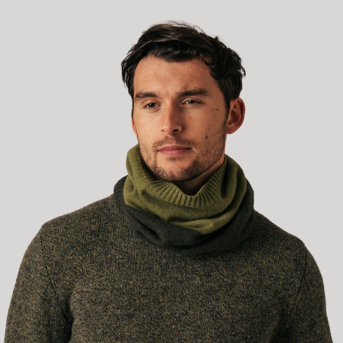 This medium weight snood in soft lambs wool is versatile, warm and practical, especially for outdoor sports and recreation. A neutral fashion choice.