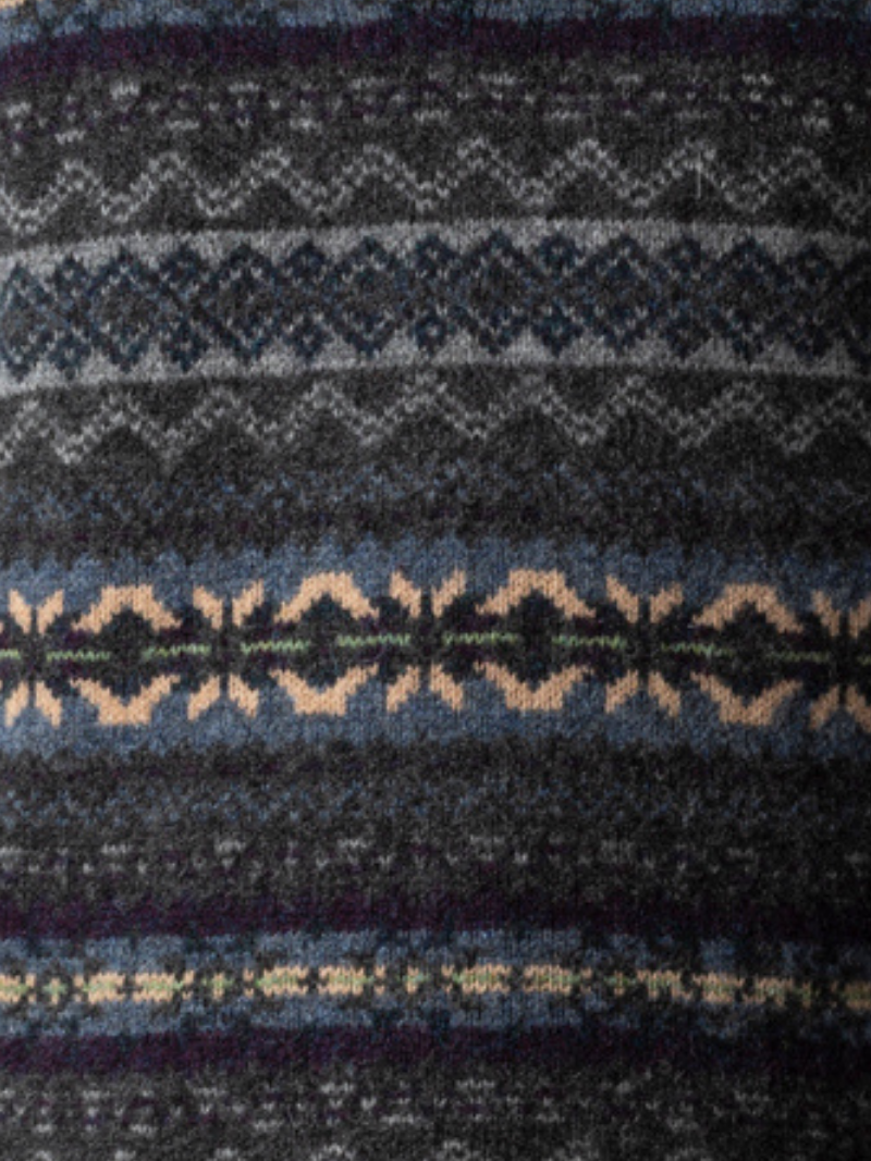 A mid-weight V-neck vest in all over fairisle pattern with 2/2 rib trims.